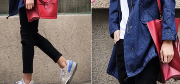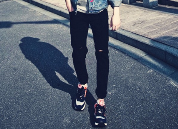 LOOK 6:牛仔外套+牛仔衬衣+黑色休闲裤+运动鞋